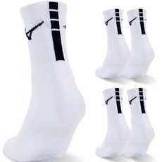 미즈노 플레이 더블 쿠션 미드 스포츠 양말 5족 세트, 화이트 블랙