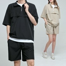 썸머 쿨 나일론 오버핏 아노락 반팔 반바지 세트 (LC085)